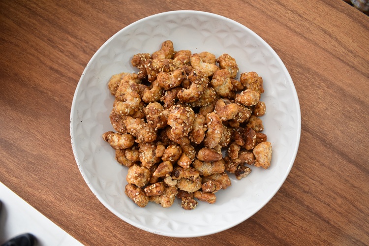 La castaña cajú, conocida por su sabor exquisito y textura crujiente, ha sido cuidadosamente seleccionada y cubierta con semillas de sésamo que le dan un toque de sabor único y irresistible.