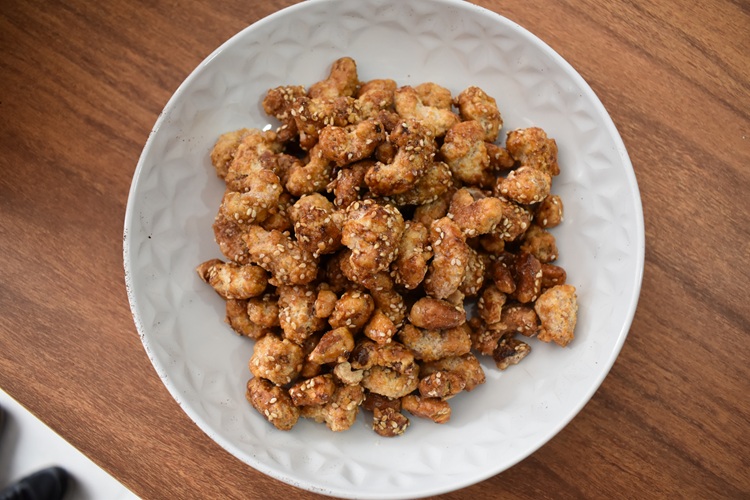 La castaña cajú, conocida por su sabor exquisito y textura crujiente, ha sido cuidadosamente seleccionada y cubierta con semillas de sésamo que le dan un toque de sabor único y irresistible.